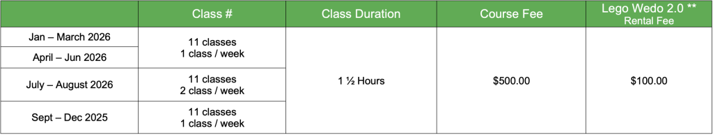 ** When the students take a coding class, they should bring their own laptop. In Level 1, they can have iPad or any Android Tap. In Level 2, they should have Window base OS laptop. (No Mac Book or ipad)