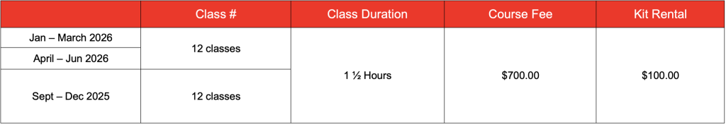 Details for the times and courses differ per school. Please inquire at the phone number below for more information. T: 604-583-9968