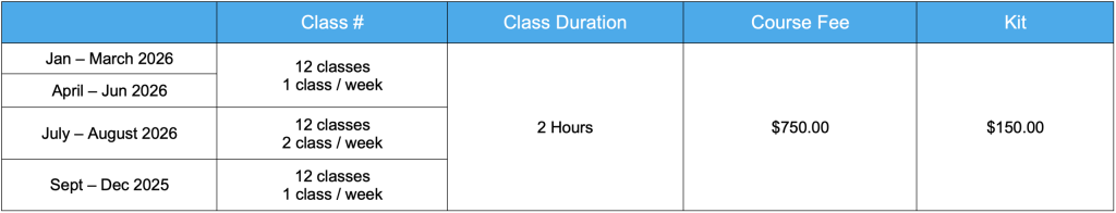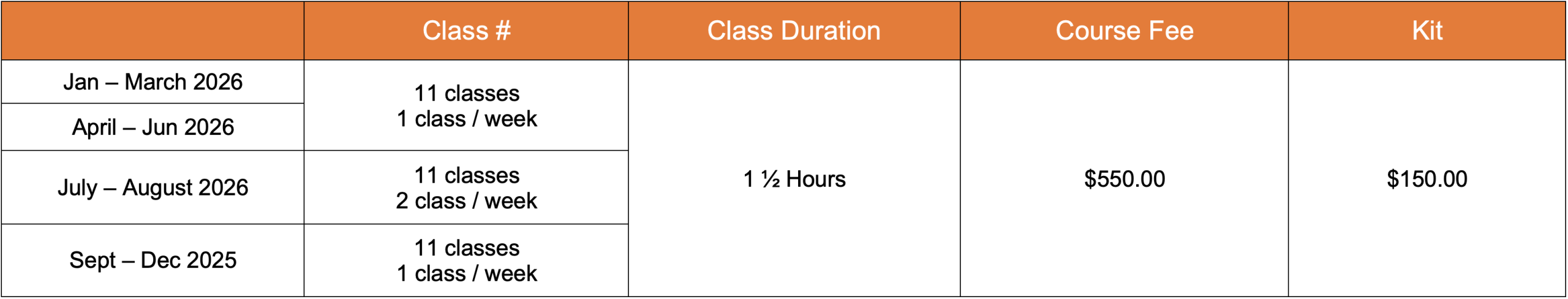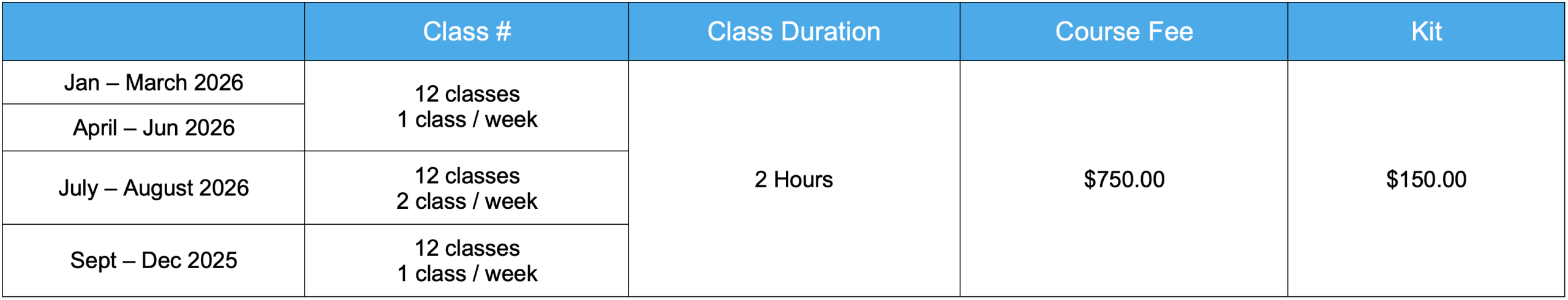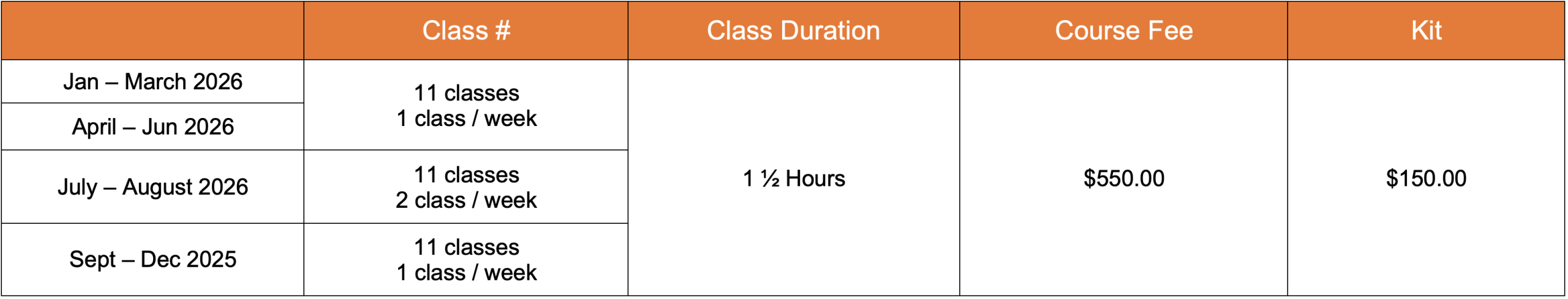 Details for the times and courses differ per school. Please inquire at the phone number below for more information. T: 604-583-9968